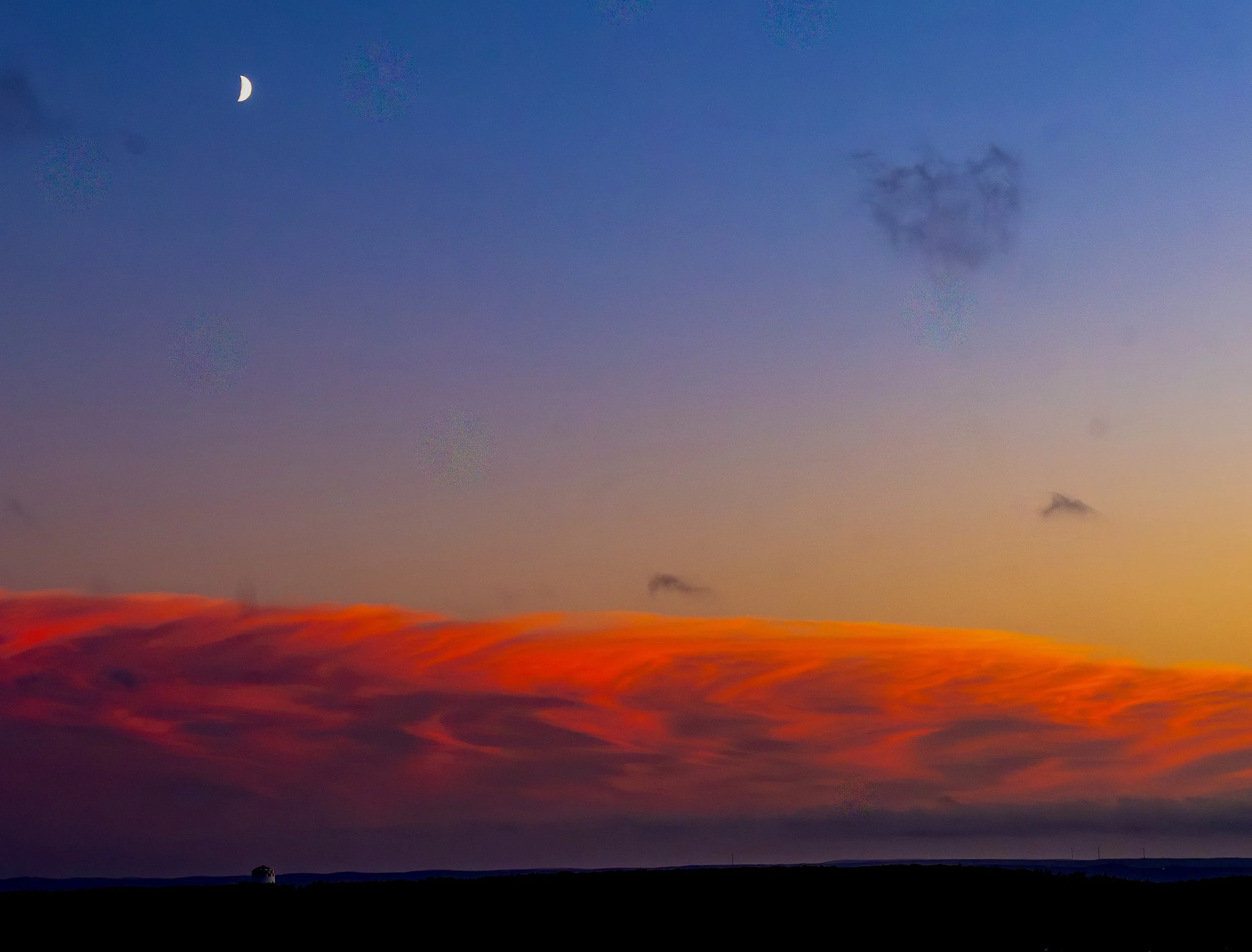 THE WAXING GIBBOUS MOON HANGS ABOVE SUNSET-LIT CLOUDS IN SEPTEMBER 2025. - JOHN MCPHEE